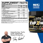 محصول EVP Xtreme N.O. یک مکمل پیش‌تمرینی (pre-workout) بسیار قدرتمند است که برای ورزشکارانی طراحی شده که سطح تحمل بالایی دارند و به دنبال انرژی بالا، تمرکز شدید و پمپ عضلانی قوی هستند.
